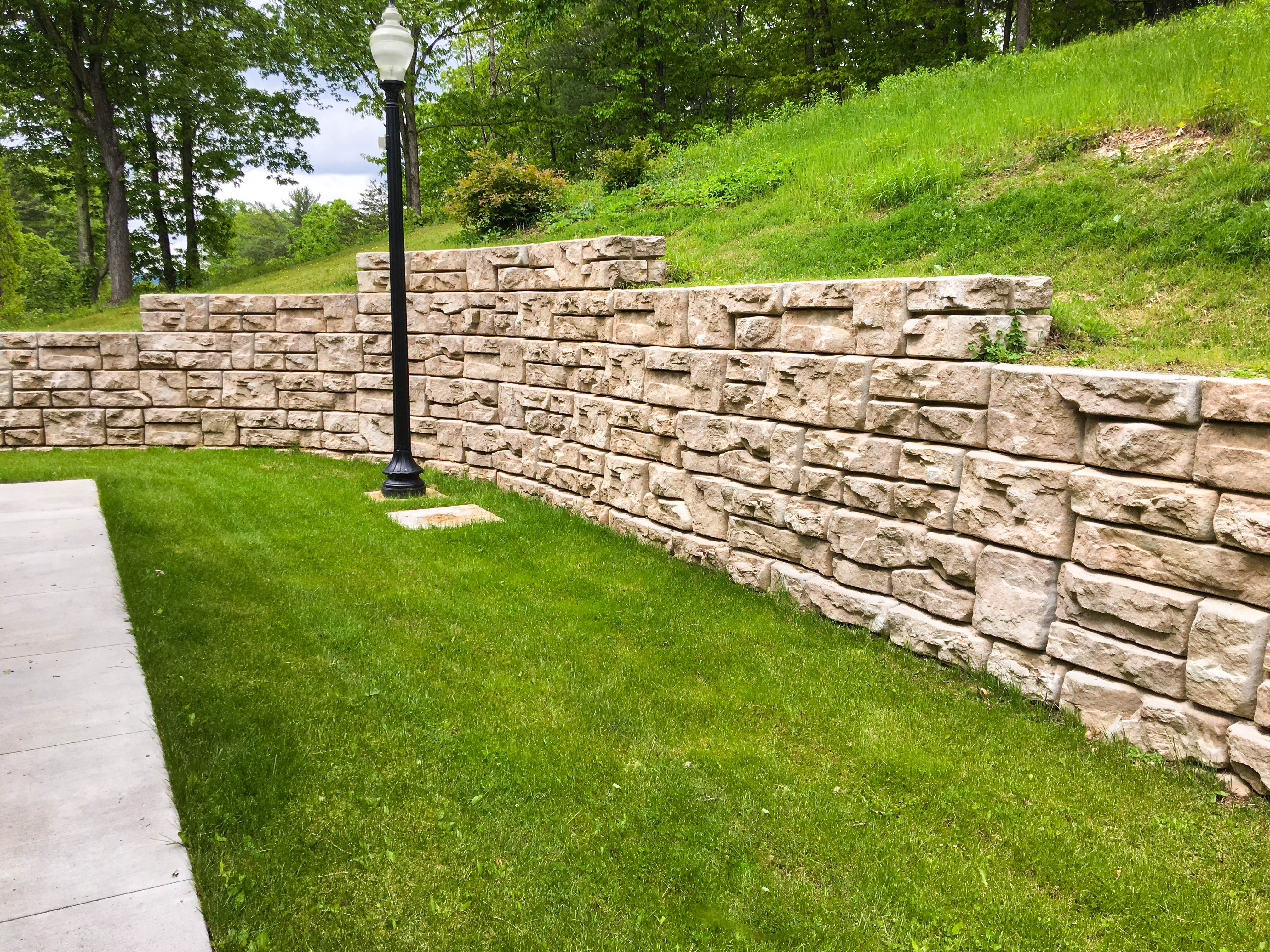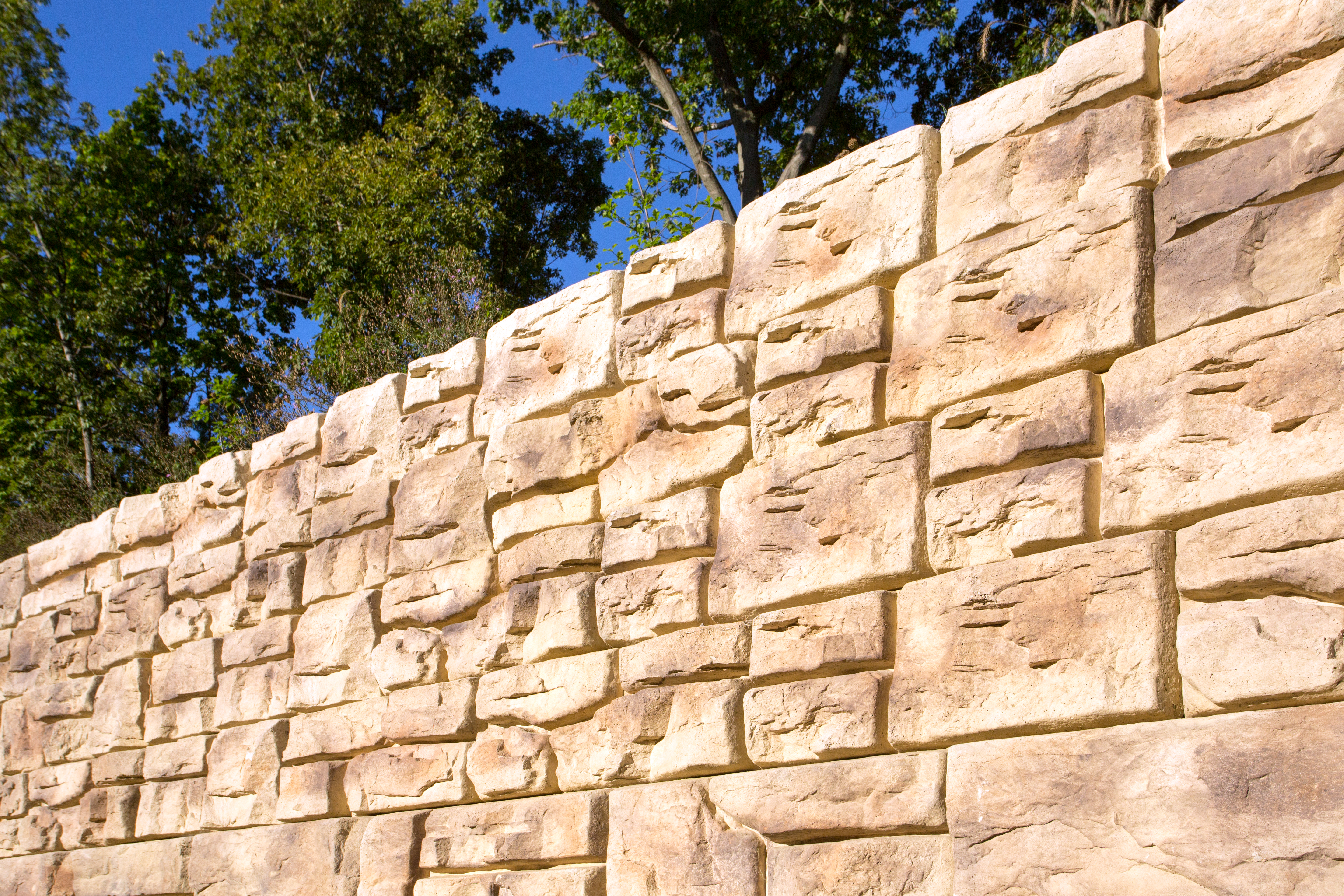 The stacked stone look of Ledgestone is beautifully designed in this natural looking face option that Redi-Rock has created. It has a lot of beautiful detail to keep your eye wandering along the wall.